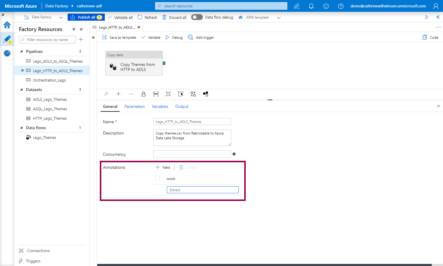 You need to figure out what kind of annotations make sense to you. Maybe you want to filter on the different logical steps of your solution, so you add the tags extract and transform? Perhaps ingest and prepare? Or maybe you want to tag resources with a business unit or a project name? It’s entirely up to you. All I recommend is that you’re consistent :)