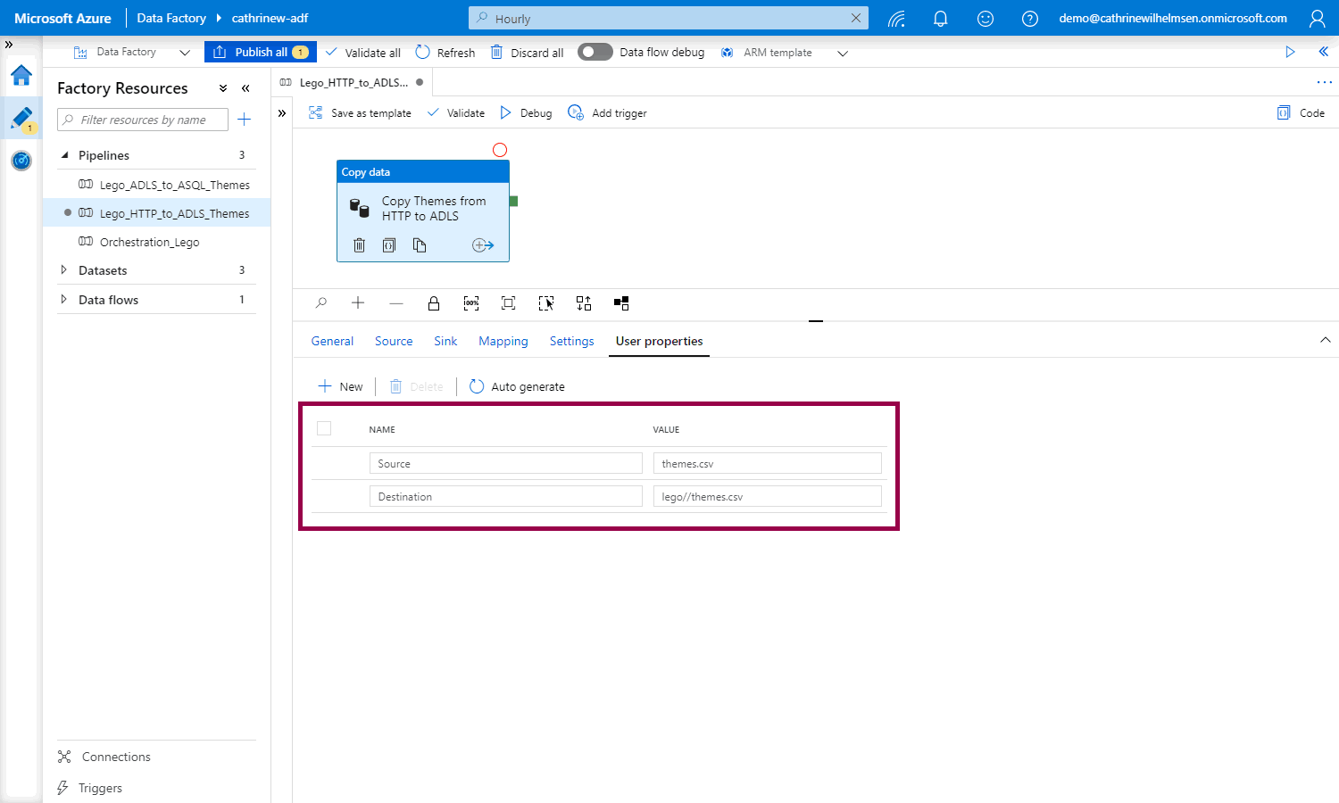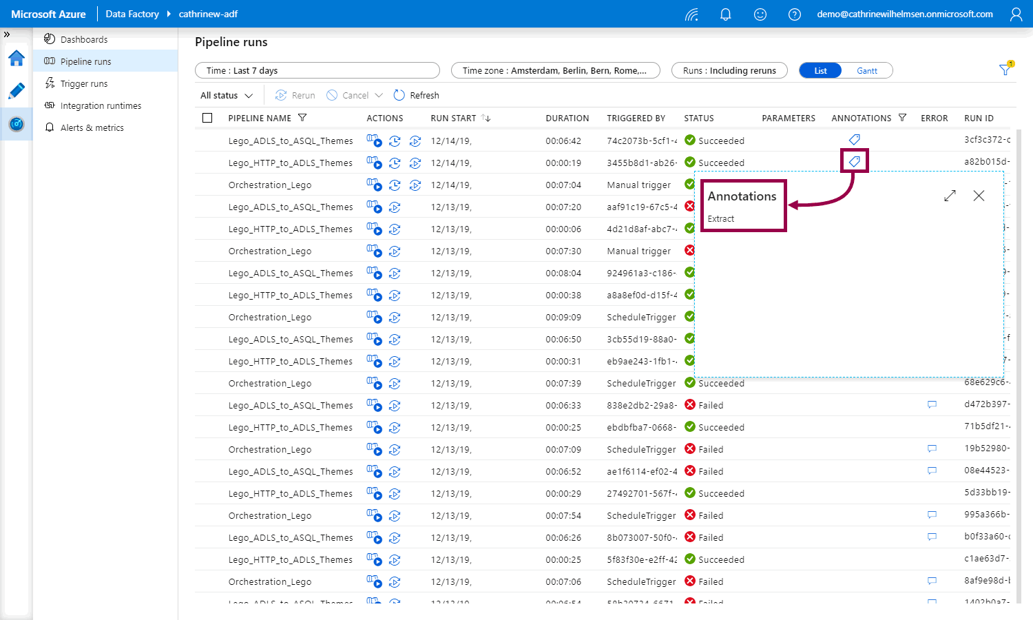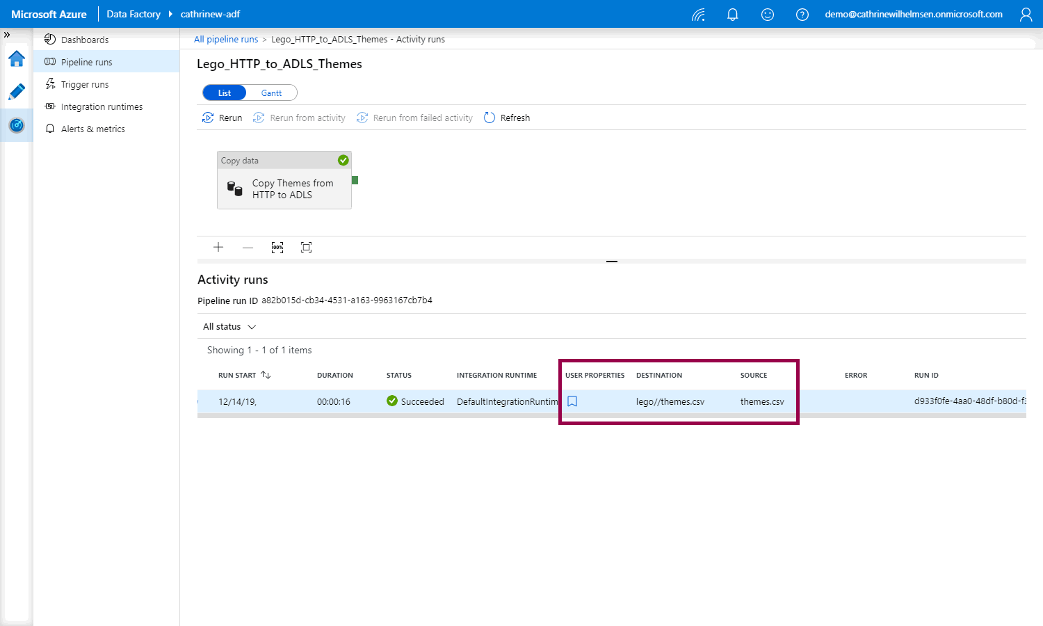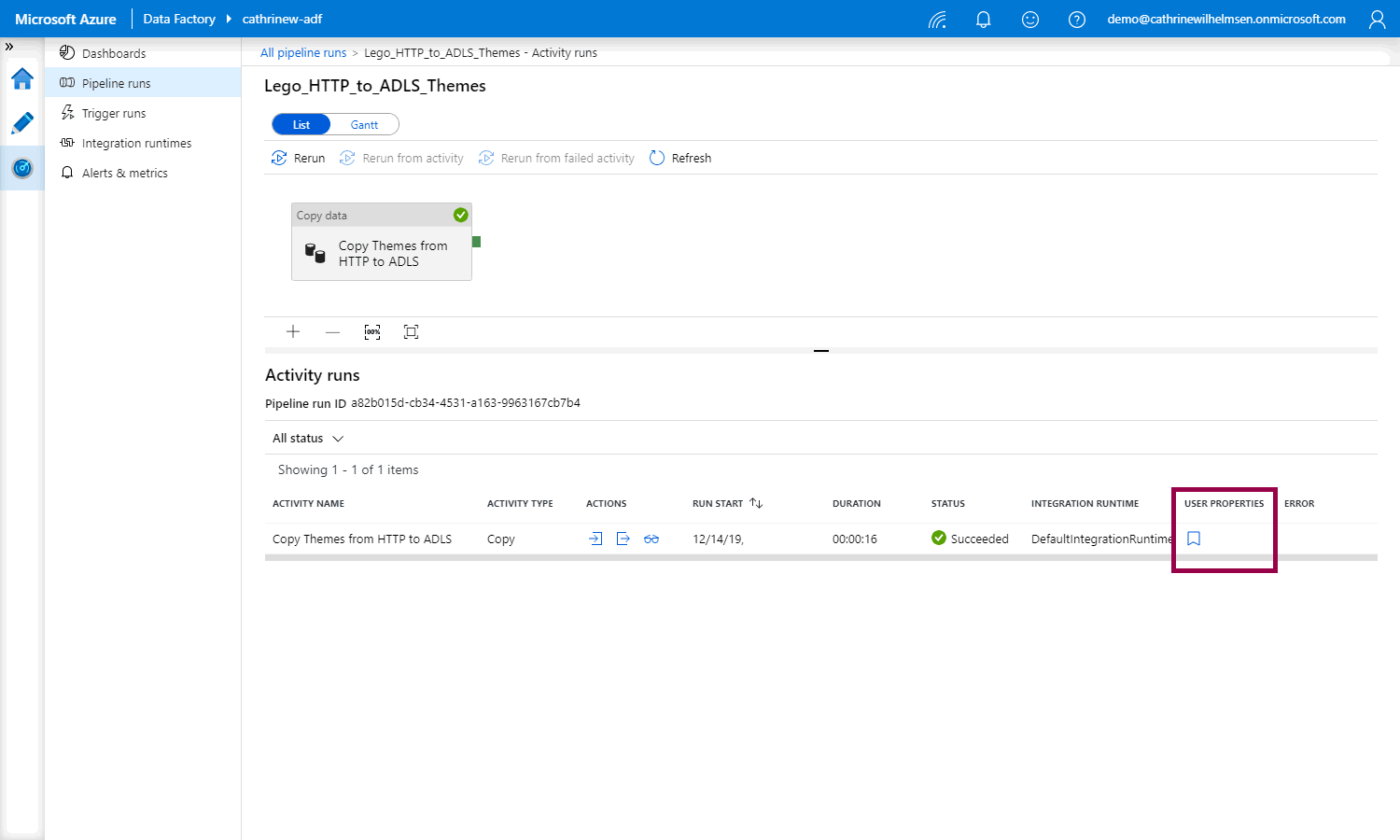 By adding user properties, you can easily see for example the source and destination files and tables directly in the monitoring view, without having to open the pipeline itself.