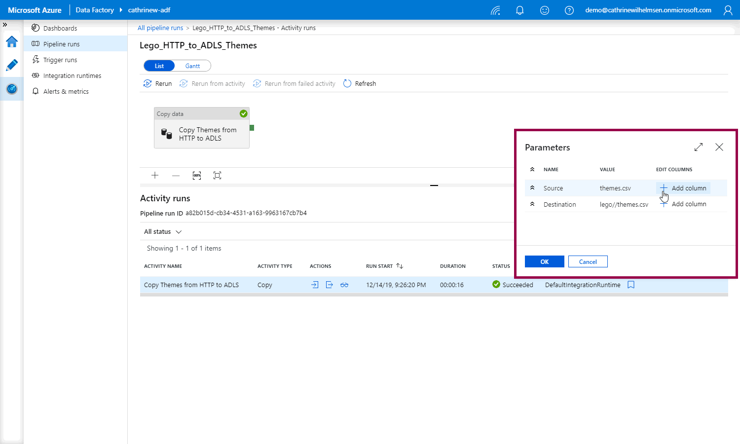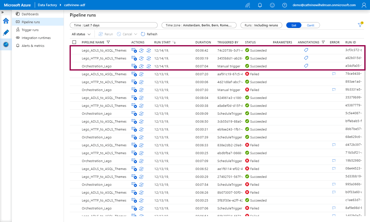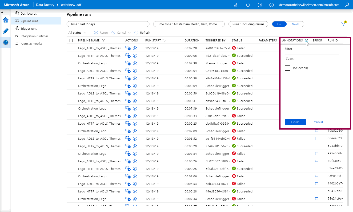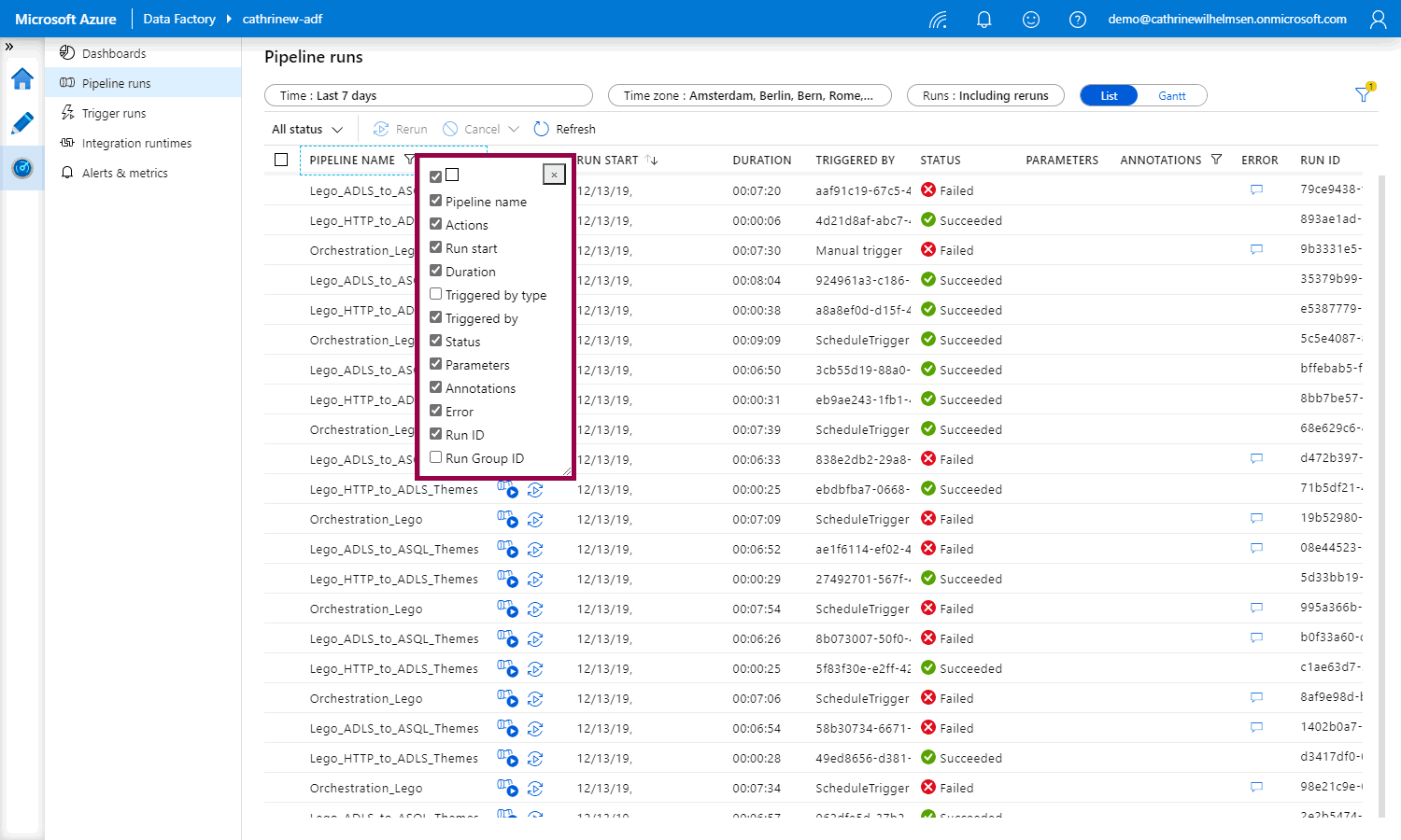 By adding user properties, you can easily see for example the source and destination files and tables directly in the monitoring view, without having to open the pipeline itself.