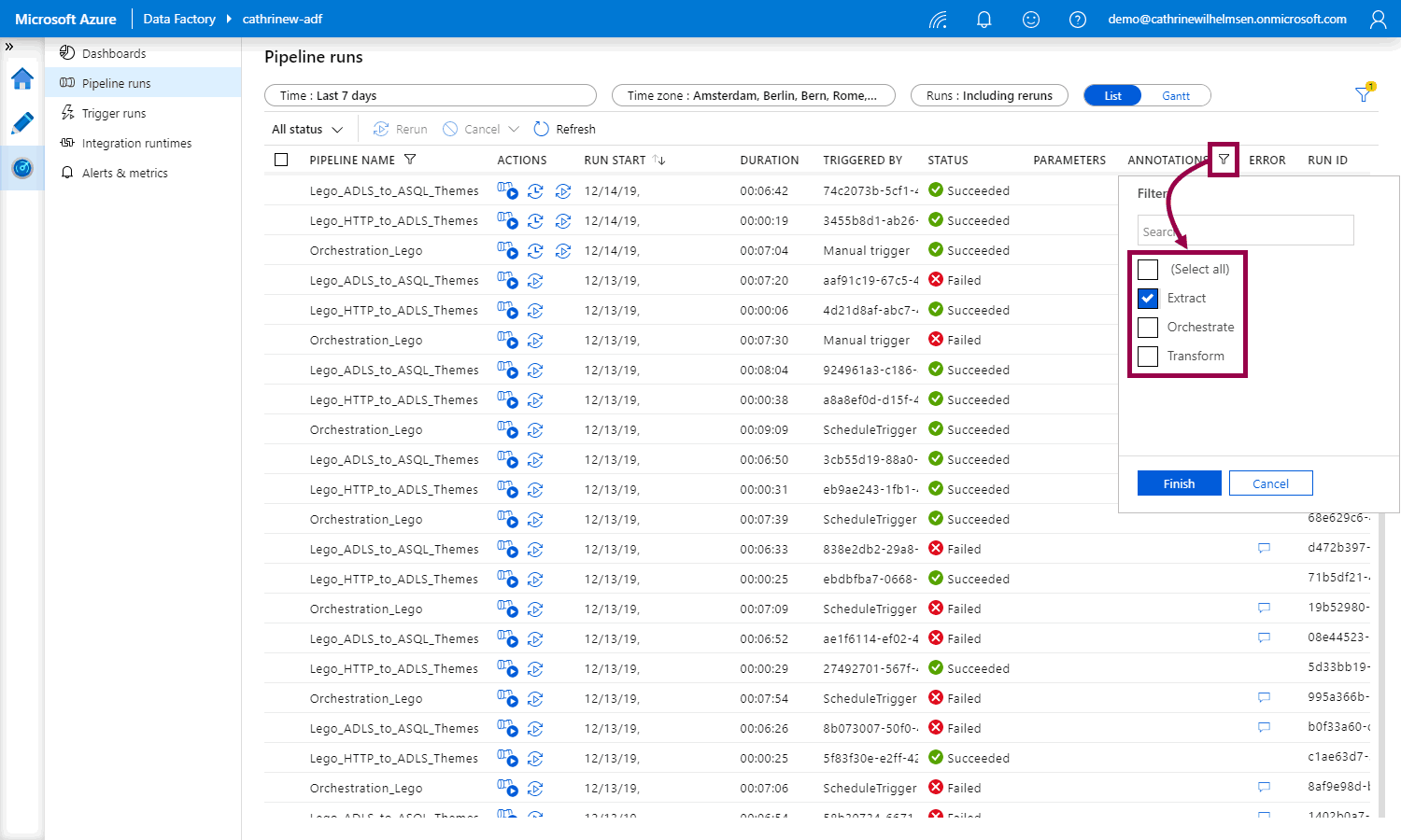 Anyway! What I really want to show is that under pipeline runs, you can filter on annotations:
