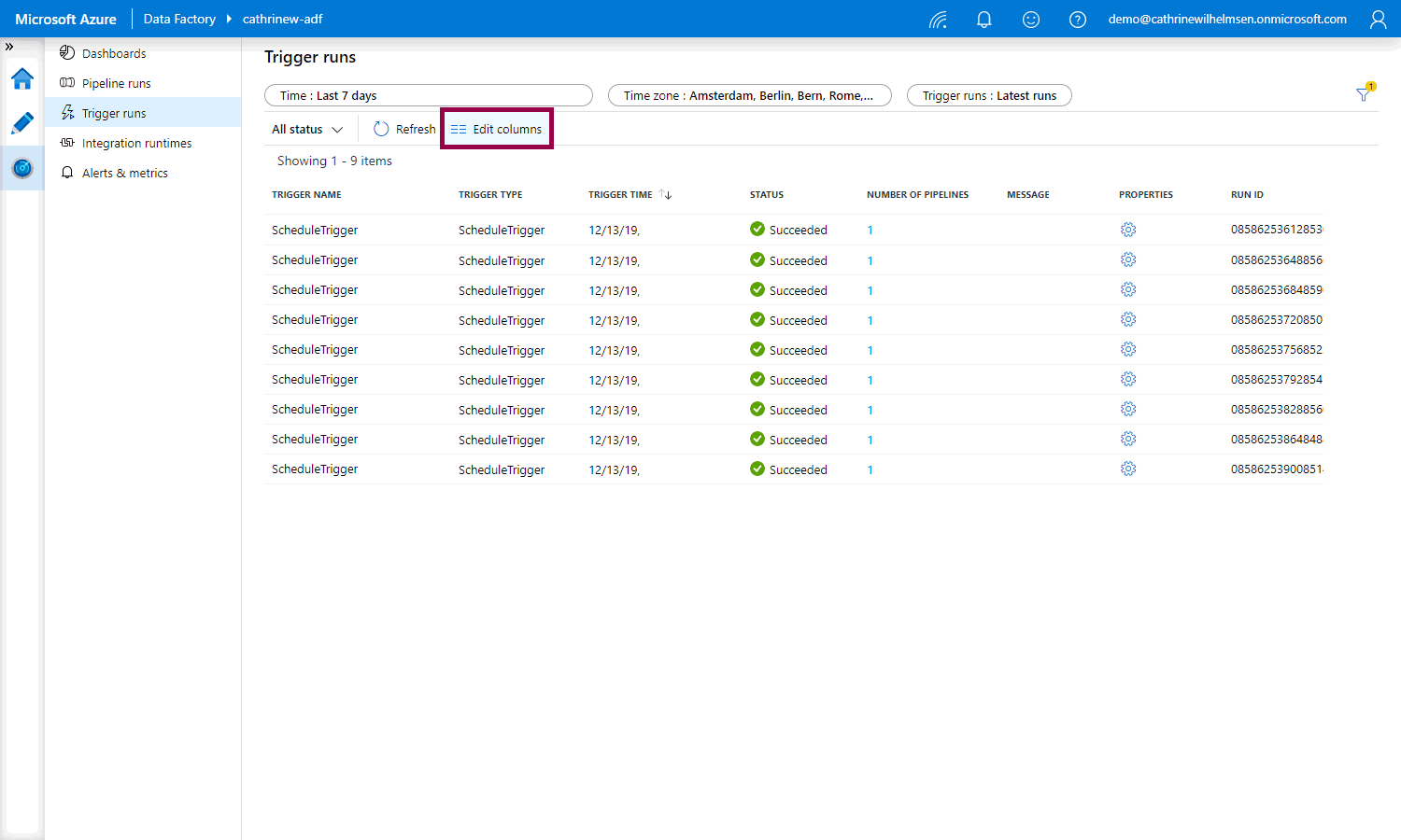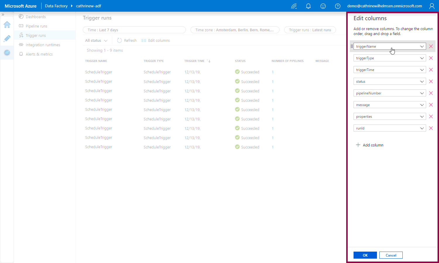 However… it’s not very consistent at the moment. Under trigger runs, you can click the edit columns button: