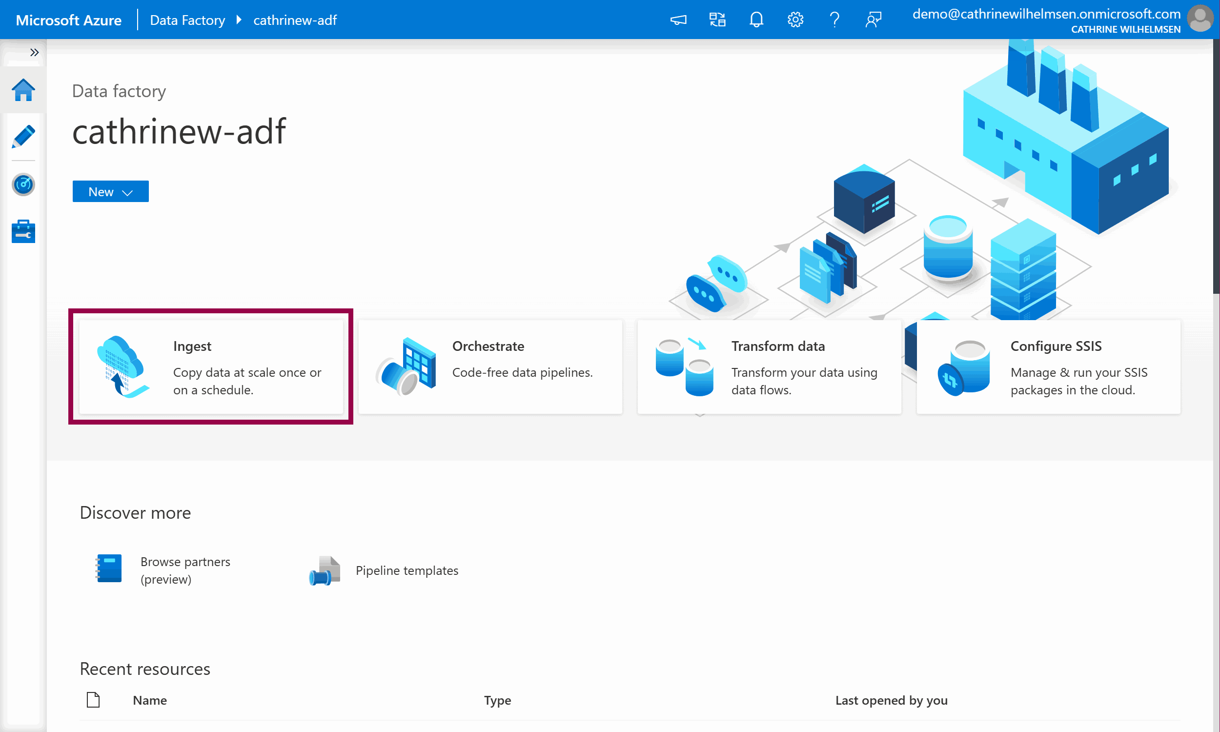 The Copy Data Tool created all the factory resources for us: one pipeline with a copy data activity, two datasets, and two linked services. This guided experience is a great way to get started with Azure Data Factory.