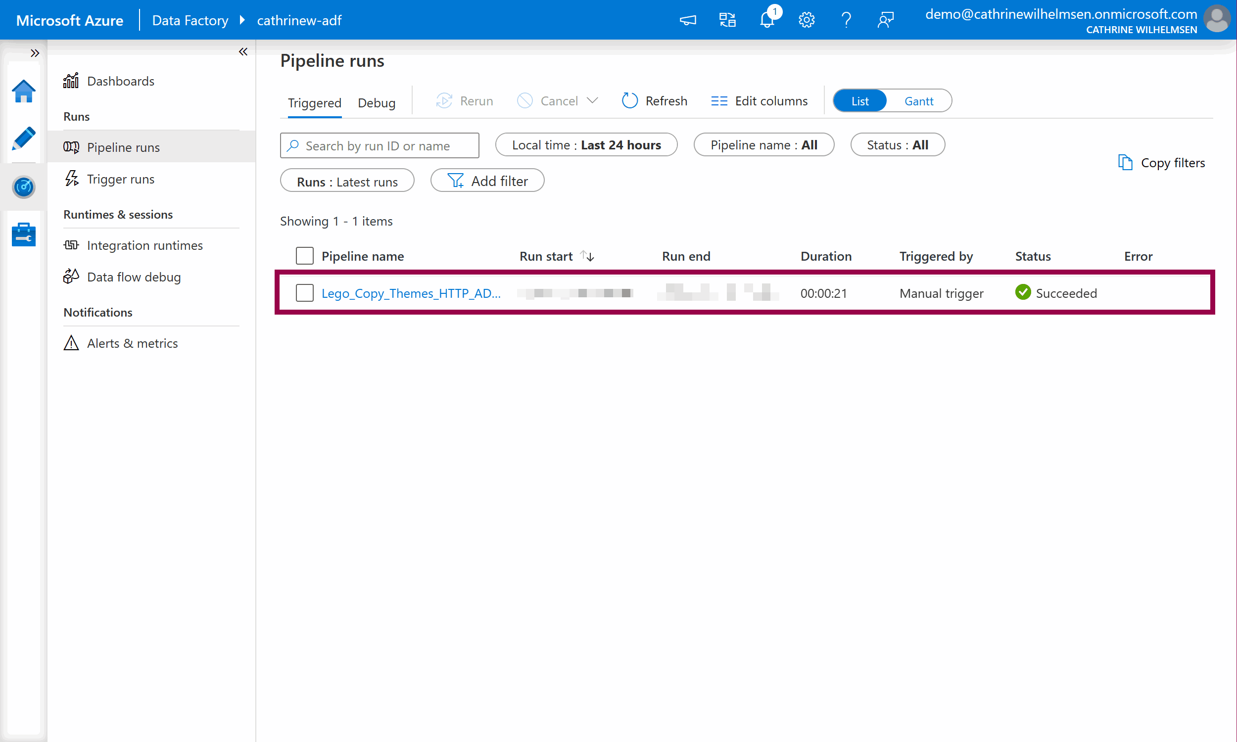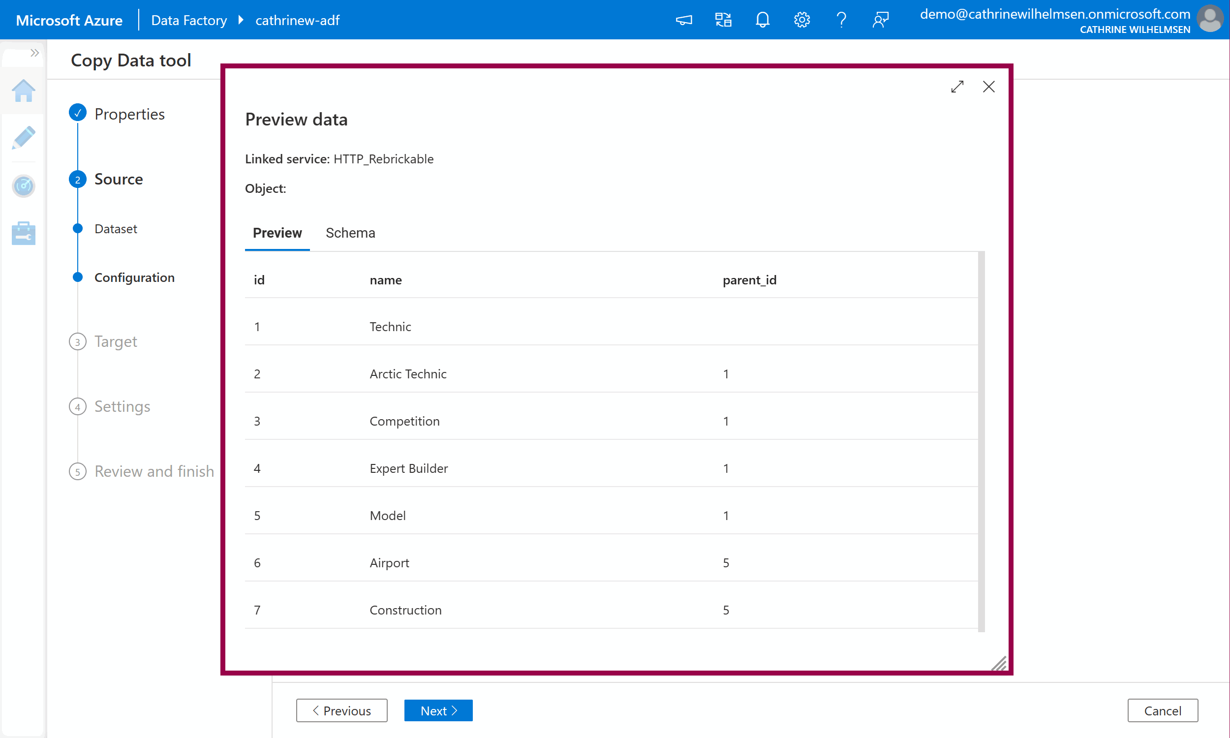 In this example, we are going to copy the themes.csv file from Rebrickable into a blob container called lego in our Azure Data Lake Storage Account.