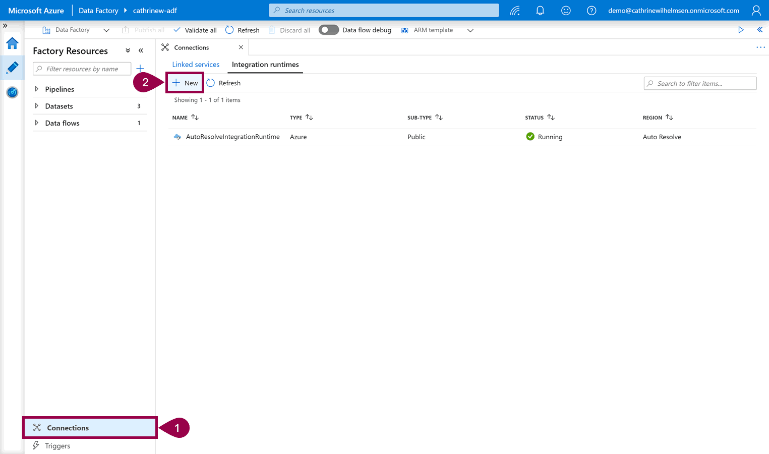 Open connections, click on integration runtimes, then click + new: