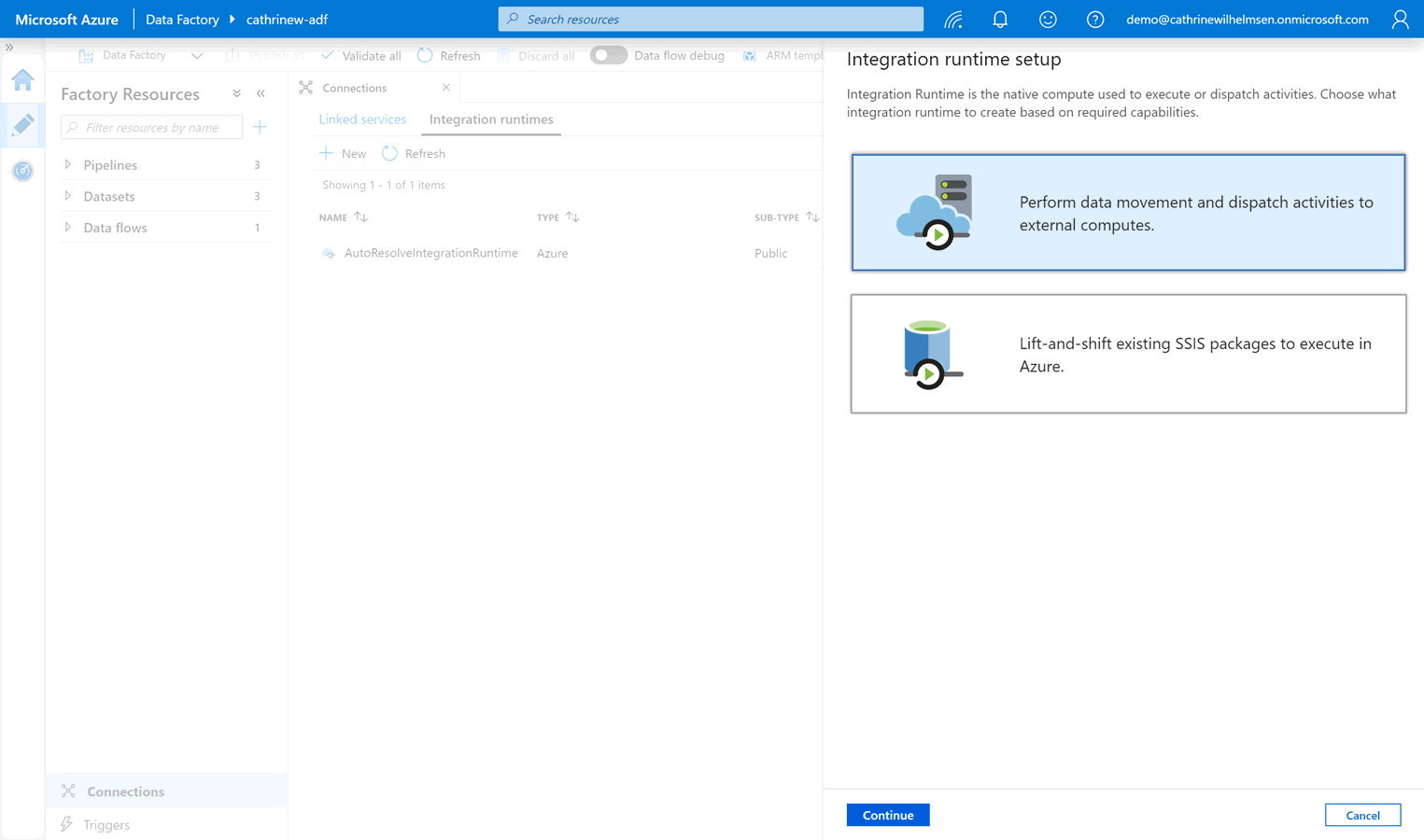 You have two options for installing the integration runtime.