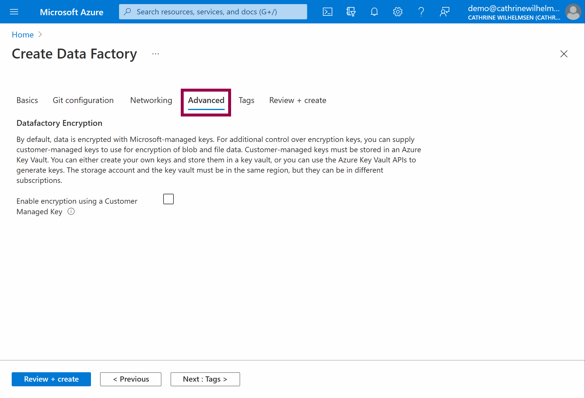 (If you want to add tags, however, feel free to do so! Tags are only metadata in the Azure Portal and will not affect our Azure Data Factory.)