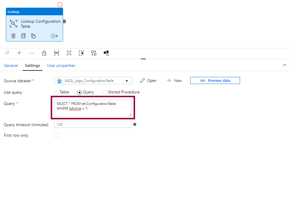 Next, let’s look at how to lookup configuration values from a table. I’ve created an etl.ConfigurationTable table using this script: