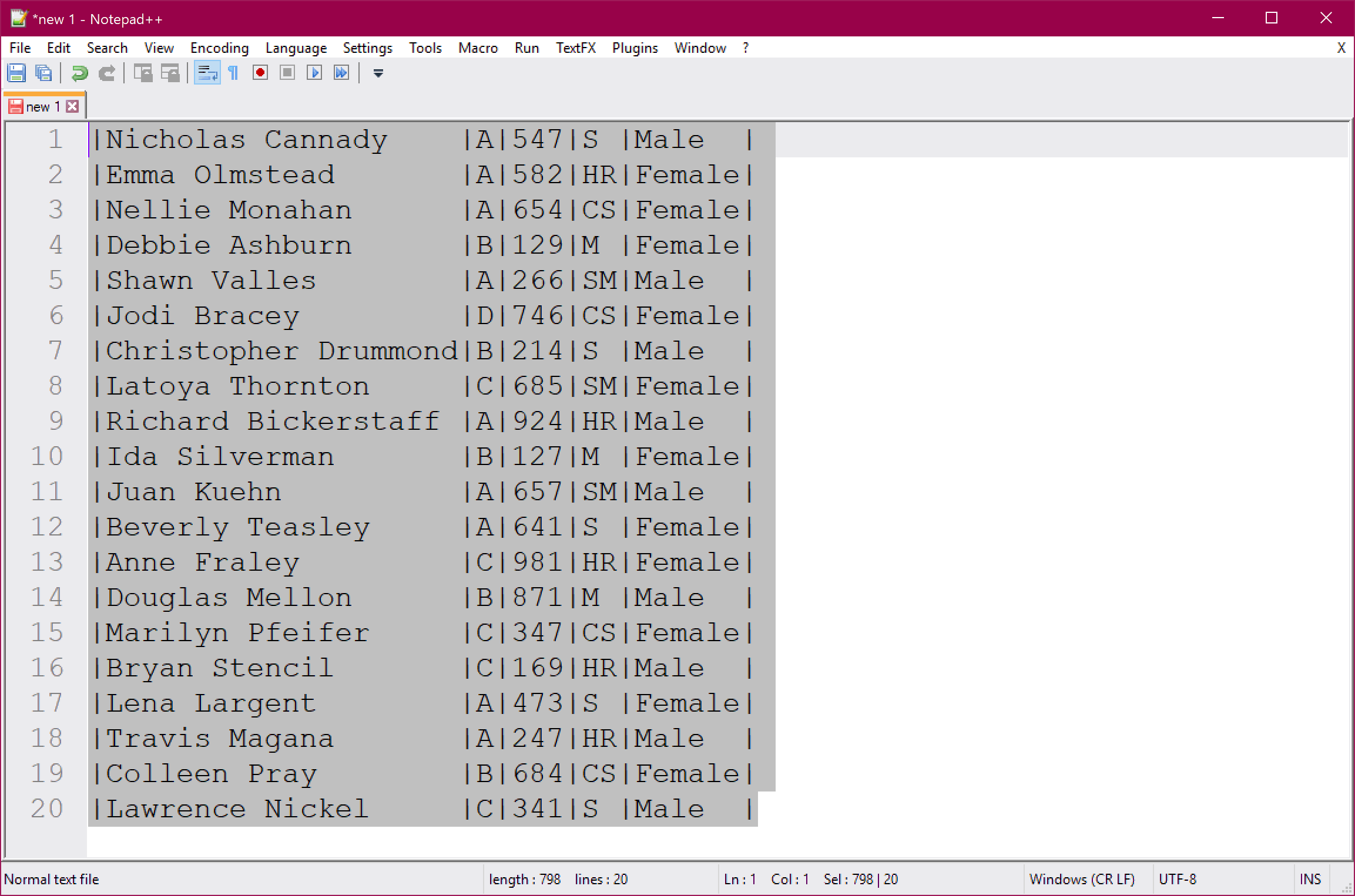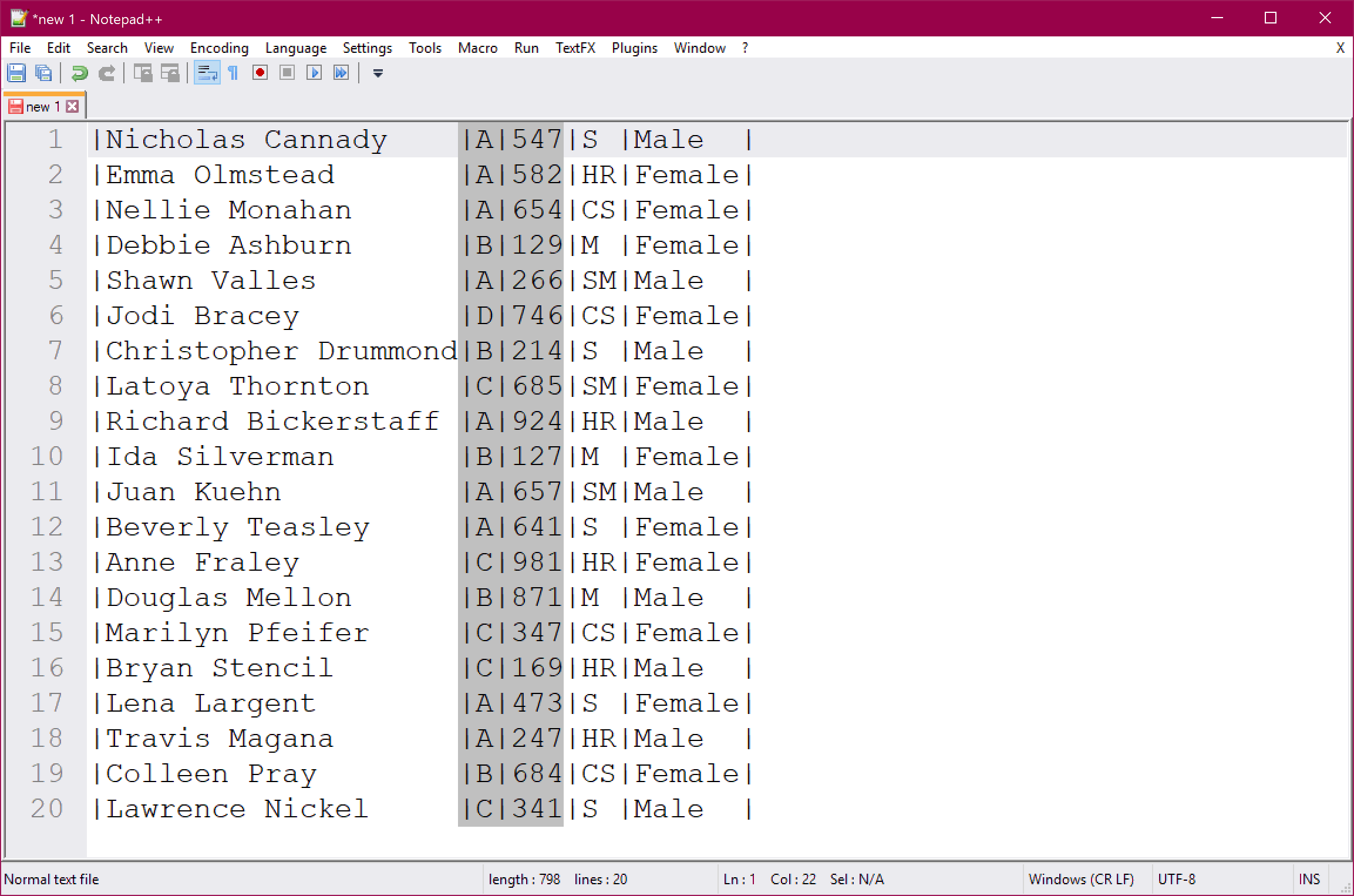 Spoiler alert! Column editing is super simple in Notepad++ 🤓 All you have to do is press the Alt key while selecting text. You can use either Alt+Mouse Dragging or Alt+Shift+Arrows. This works perfectly on text that is already aligned. But what if your text is not formatted as columns already? You can quickly fix that by using the TextFX plugin.