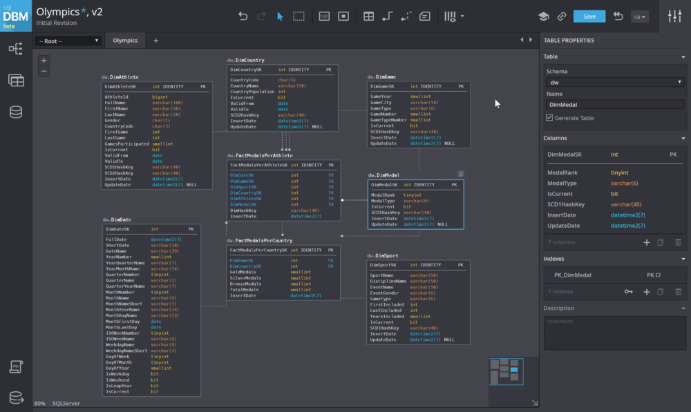 One of the newer online tools I have started using is SQL Database Modeler. This tool allows you to design SQL Server database models directly in your browser. You can forward-engineer your model to create all the scripts necessary to create the physical database, or you can reverse-engineer an existing database to create a model from it. The tool is easy to learn and use, and I like how the interface looks. As I’m writing this, SQLDBM is still in beta, so I’m looking forward to seeing what new features will be added.