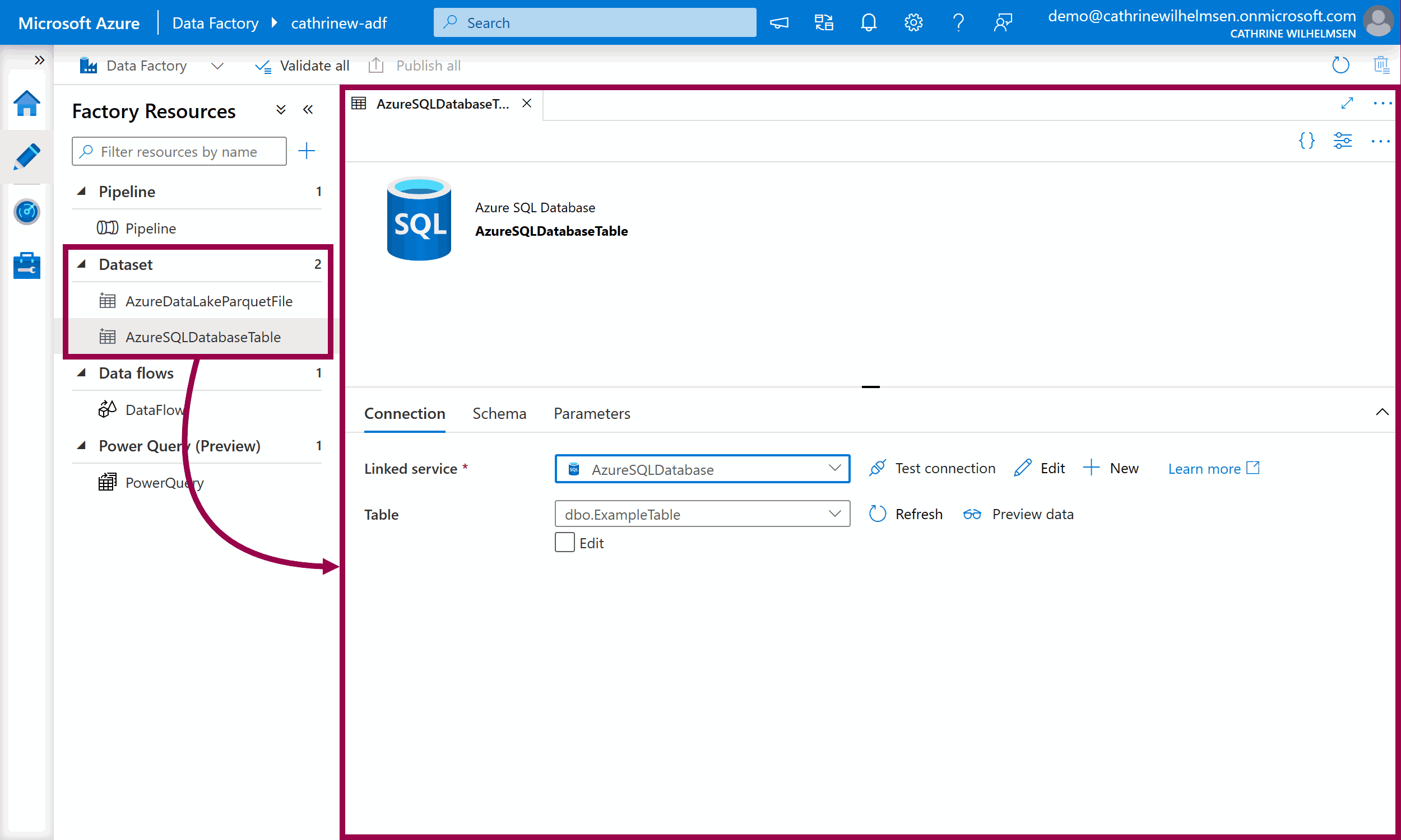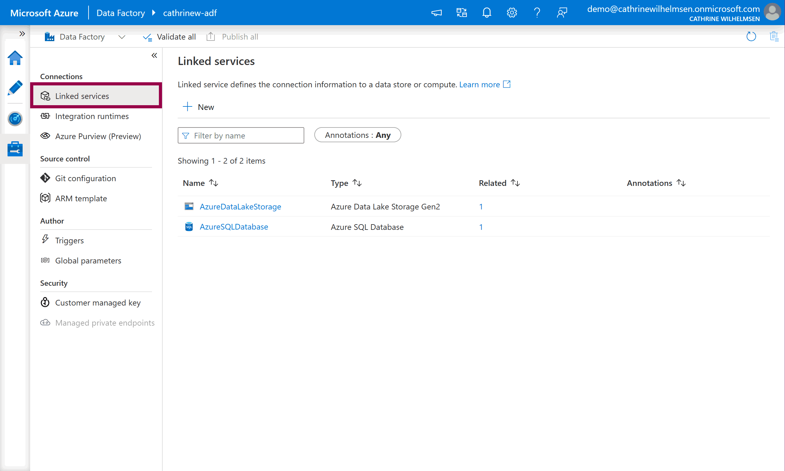 When you create a dataset, you need to specify how to connect to that dataset. You do that using a linked service, which takes us to the next page!