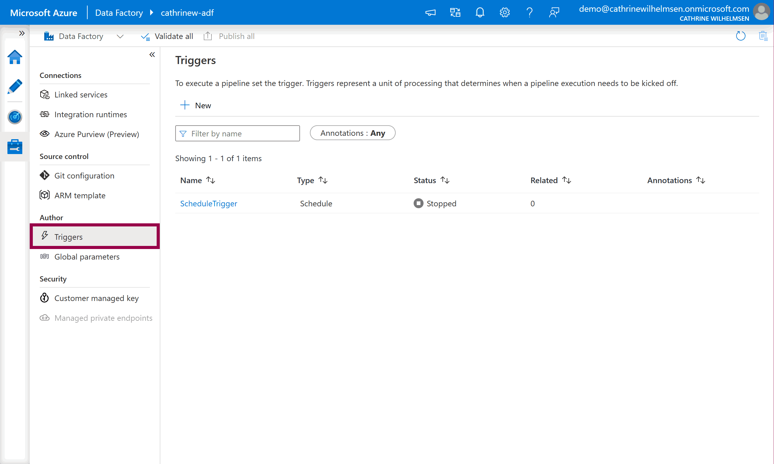 On the left side of the Management page, you will see components and services you can create and configure. We will focus on two of the core components in this post: linked services and triggers.