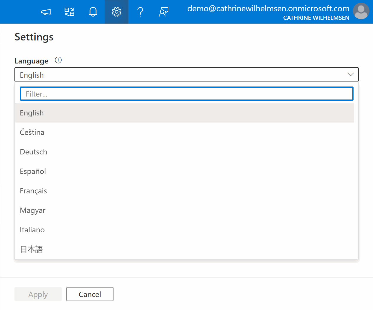 From the Settings menu, you can change the language of the interface: