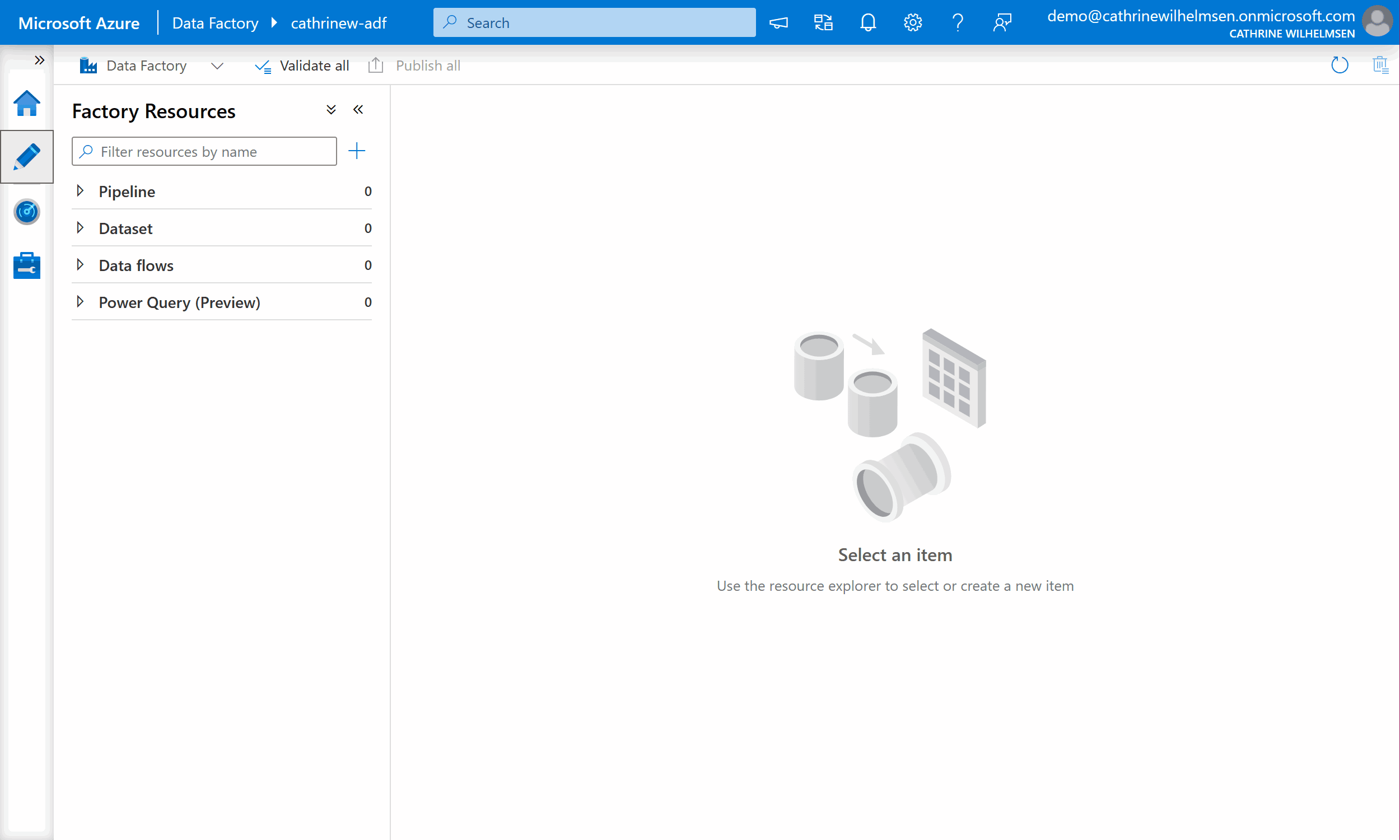 If you are working with multiple Azure Data Factories, you can easily switch between them in the Switch Data Factory pane: