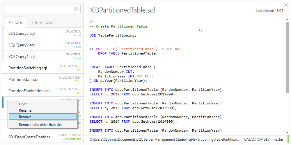 Use Redgate SQL Prompt Tab History to view, reopen, search and navigate through closed and open tabs in SQL Server Management Studio (SSMS). Combine it with Redgate SQL Prompt Tab Coloring and learn how to use keyboard shortcuts to become a more efficient developer in no time 🥳