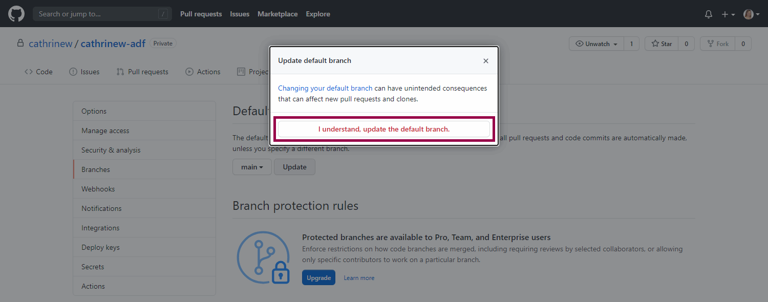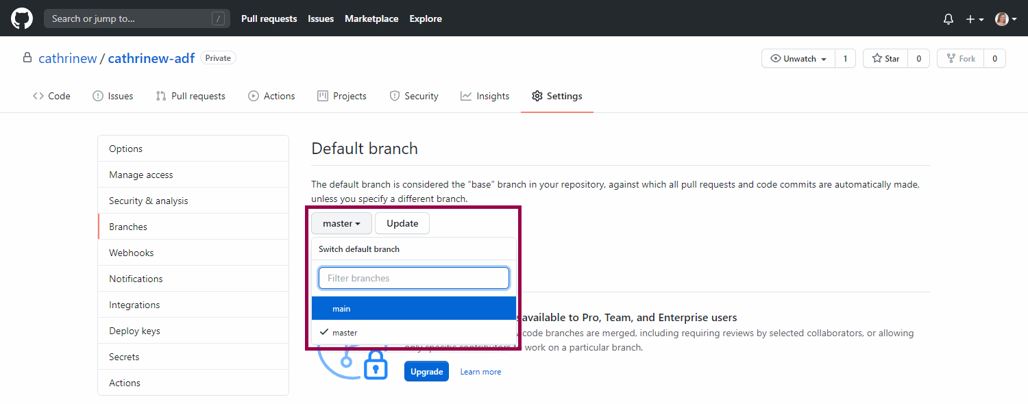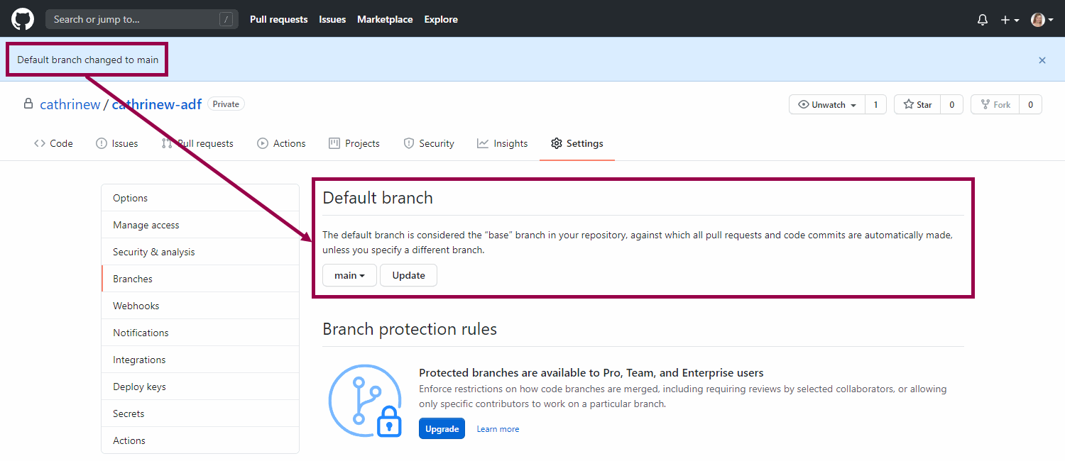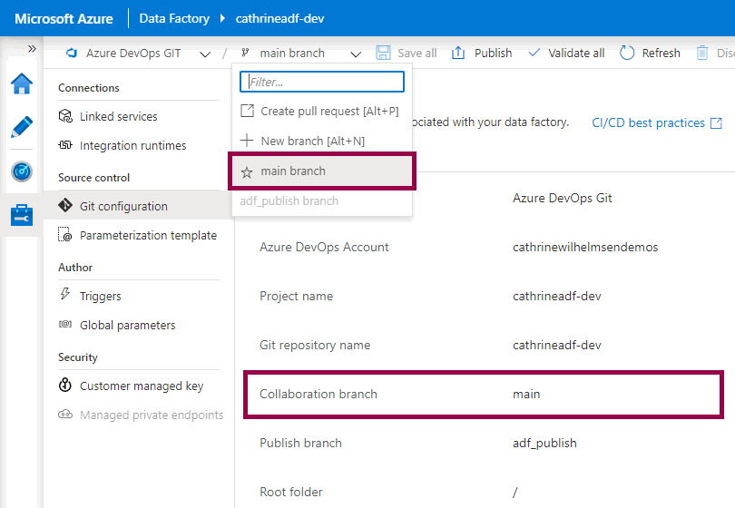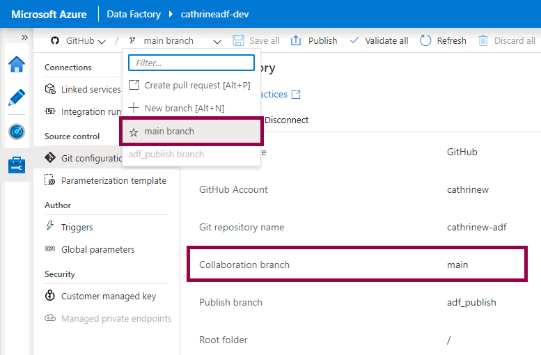 In this post, we looked at how to rename the default branch in GitHub and Azure DevOps, and how to reconnect Azure Data Factory to use the new default branch as the collaboration branch: