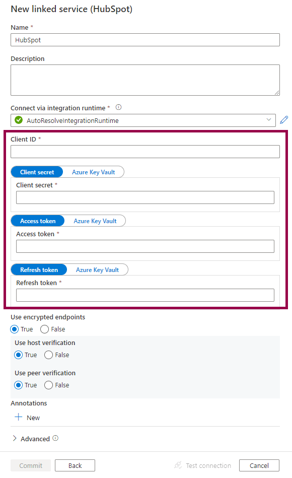 Connecting to HubSpot from Azure Synapse Analytics or Azure Data Factory