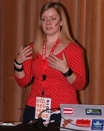 Cathrine Wilhelmsen speaking at SQL Server Days 2015.