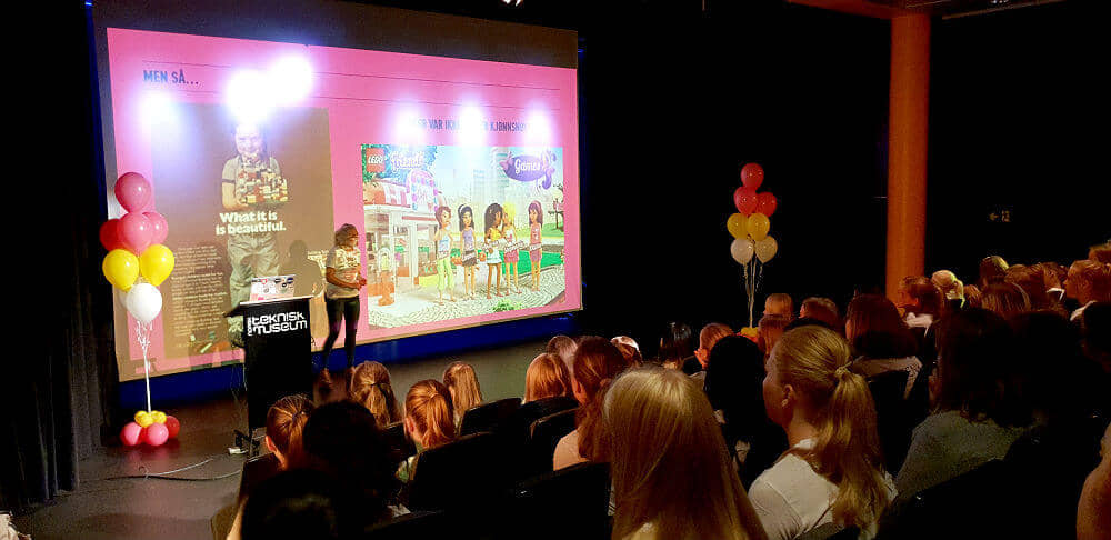 After the keynote, the girls divided into groups and headed off to their first workshop of the day. When the workshops ended, we gathered for lunch and watched two presentations: Kristin Brænden brought the robot AV1 and explained how it was built to help fight loneliness and isolation, while Synne Uddmo Ask talked about confidence, supporting each other, and being authentic and true to yourself. Synne kicked off her presentation by dancing on stage and literally showing the girls that “hey, just be who you are, have fun, don’t worry about what others think about you - it’s OK”. I LOVED IT 👏🏻