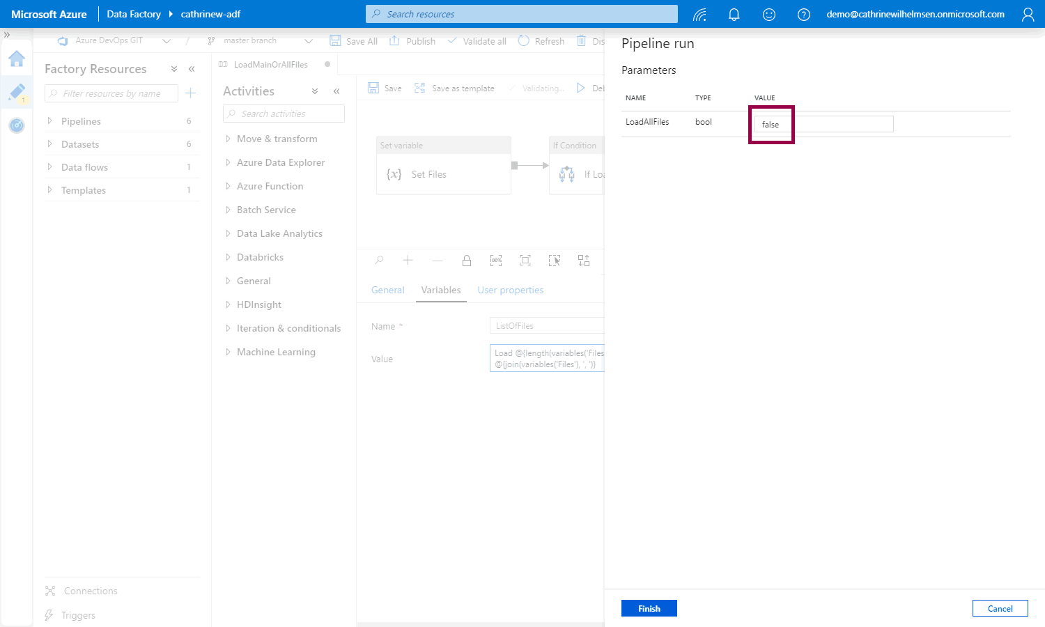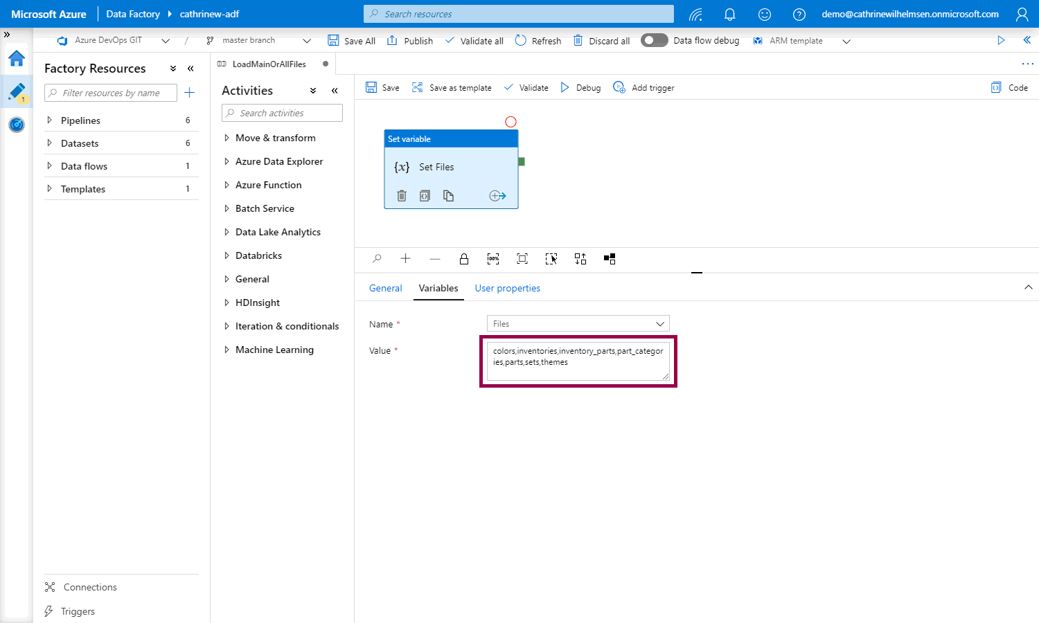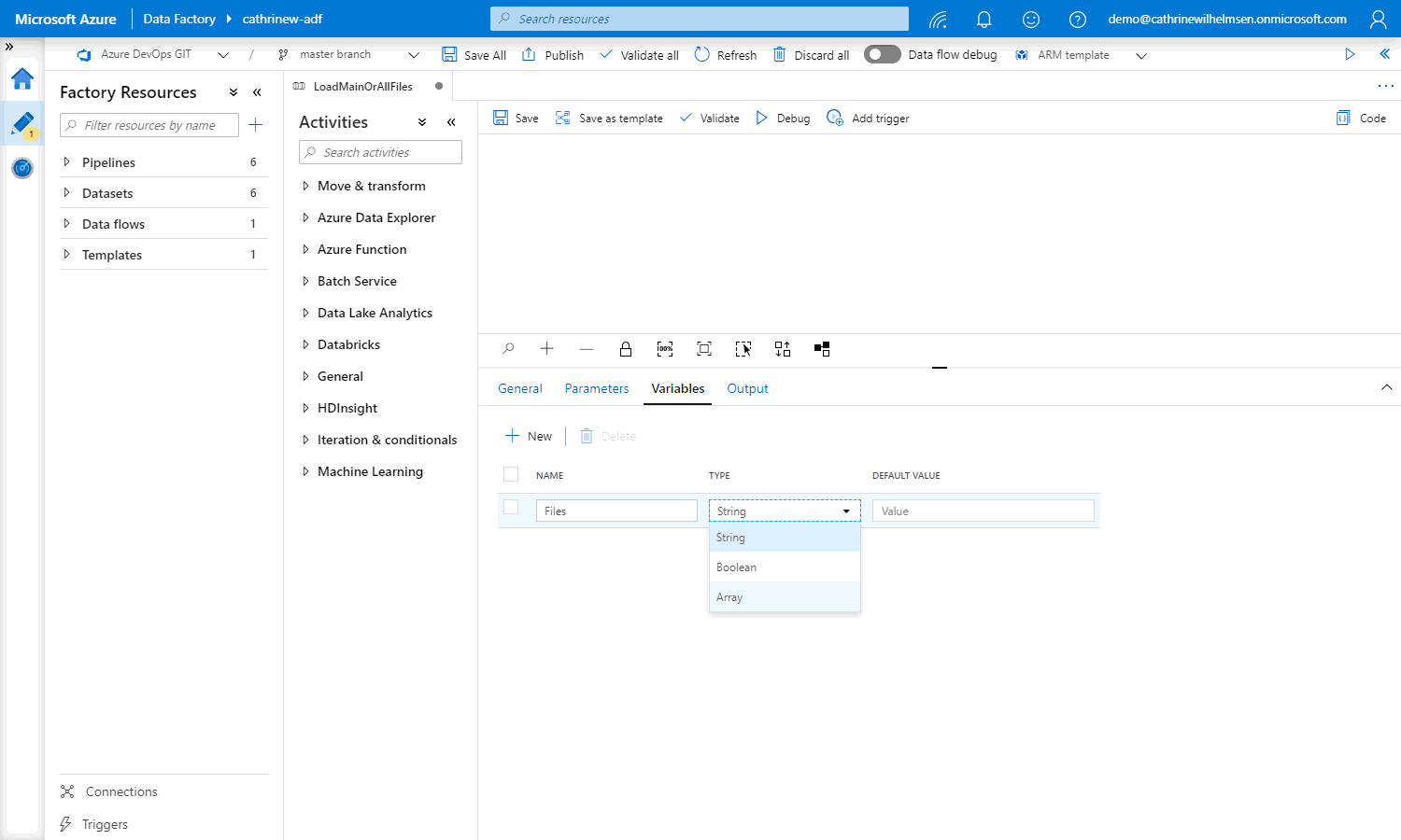 Variables in Azure Data Factory