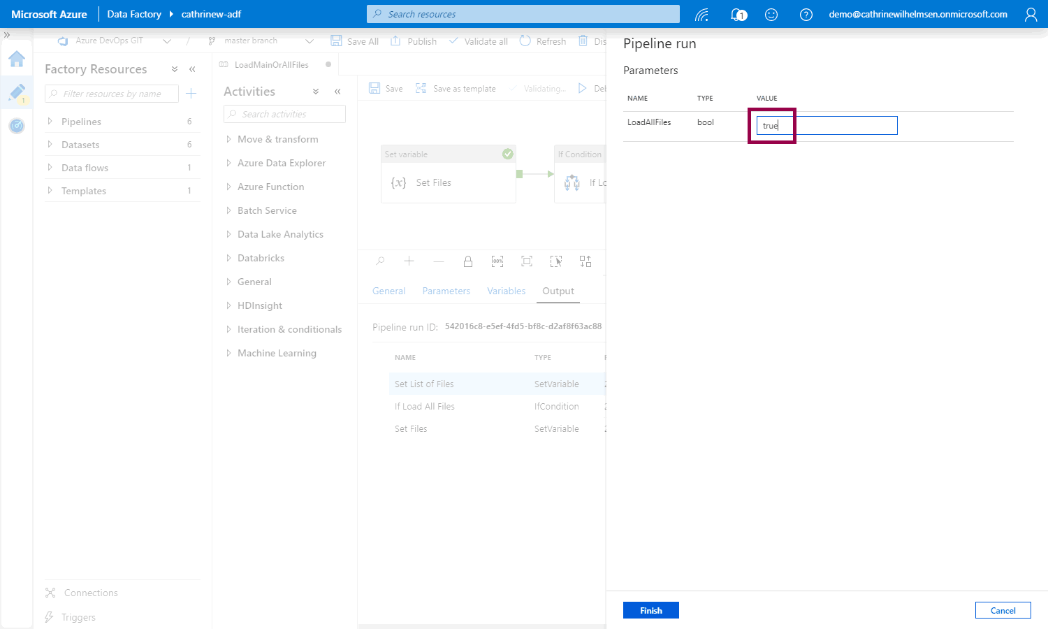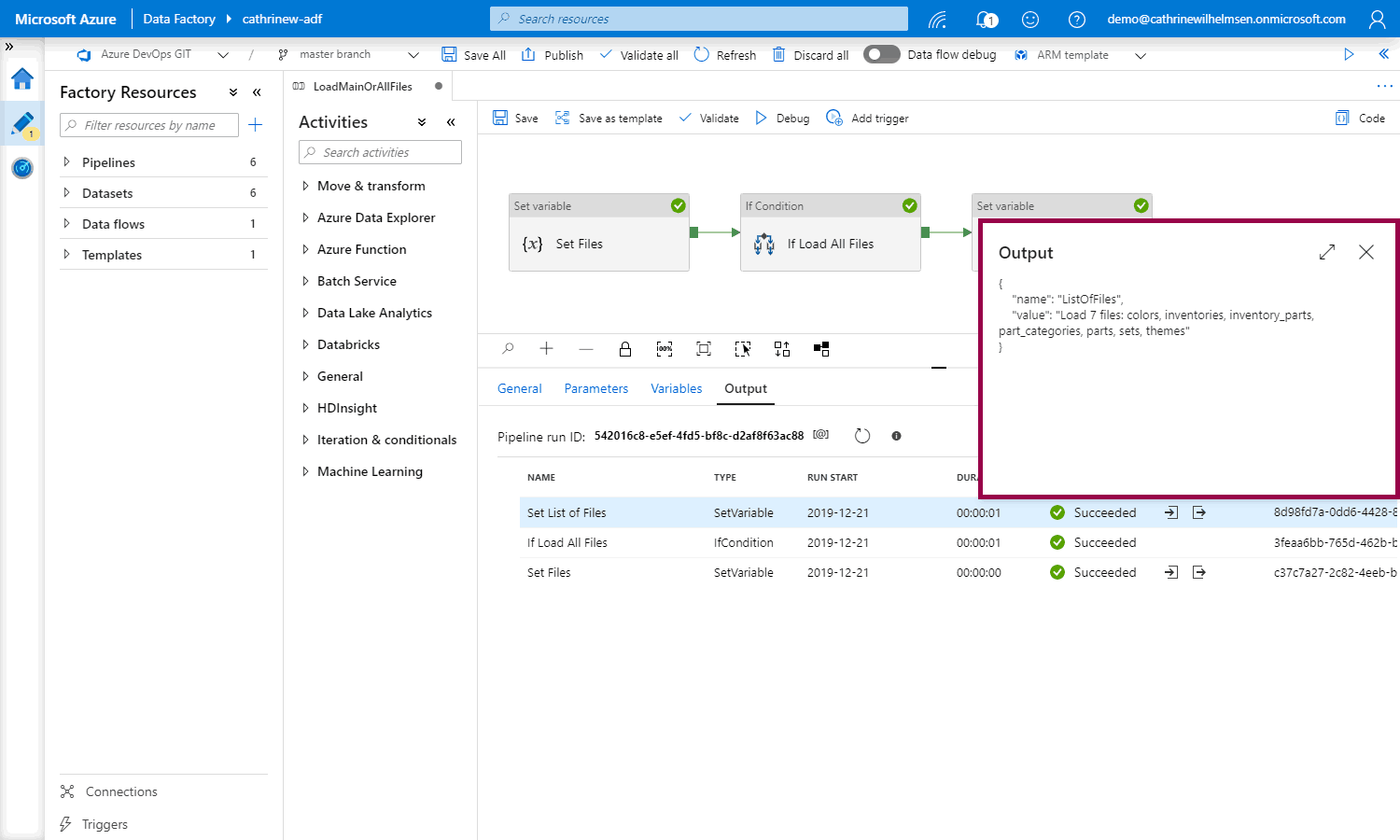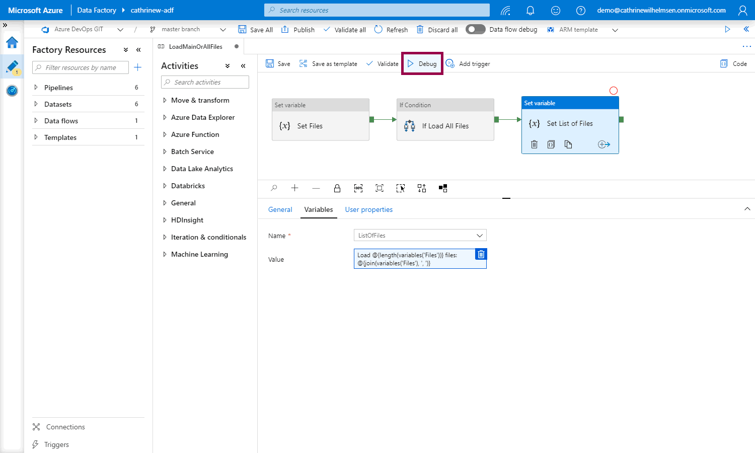 Let’s try again! debug the pipeline again, but this time, set LoadAllFiles to true: