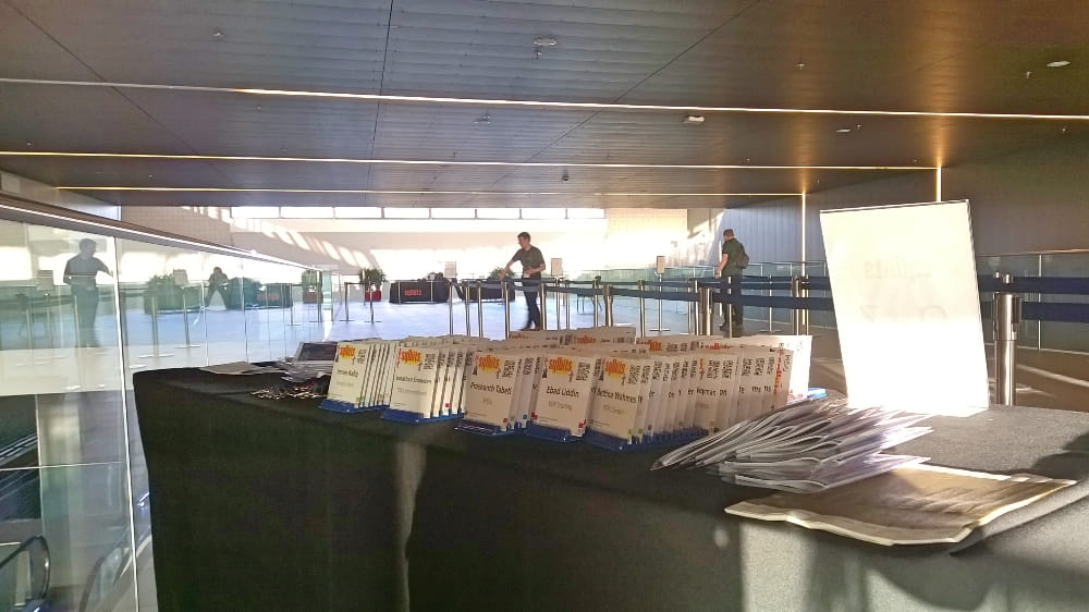 On Wednesday morning we set up the registration area and Annette did the volunteer briefing. As a rather new organizer I tried to learn as much as I could from Annette, and I look forward to meeting her again in Exeter so I can pick up even more useful tips 😊 Each volunteer got their own folder with schedules for each day and information about the different name badges and wristbands so we knew who to let into the different sessions. We got clear instructions on what we needed to do as room monitors, and each room had its own room monitor folder. The folder contained a form for each session that room monitors had to fill out and sign, plus all the signs we would need: time left, reserved seats, session full, no entry and exit only. The form included information about what we needed to do before, during and after the session, at which times we had to notify the speakers about how much time they had left, and a few other questions. It made being a room monitor so easy! 👏🏻