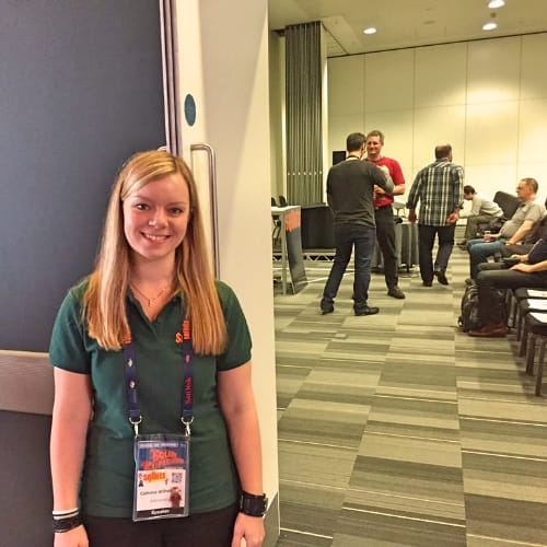 The next four hours were spent getting to know other volunteers, packing bags, packing bags, eating and packing bags. There were two tables set up with all the sponsor swag on both sides of the table. After lots of trial and error trying to figure out how to pack bags most efficiently without walking into each other, my “Norwegian Method” caught on. Start on the side of the table where the packed bags are dropped off. Walk along the table and grab one of each item. When you get to the end, pick up two empty bags and stuff everything in one of the bags. Continue to walk clockwise on the other side of the table, stuff the other bag, and drop off the two full bags. Repeat, repeat, repeat for four hours 😄 I’m not sure it was the most efficient technique, but it was my favorite. However, at the end of the day there were so many people there that I gave up the packing and helped out with cleaning instead. At the end of the day we headed over to the Aloft hotel bar and grabbed some drinks. It was so great to meet people I had only talked to on Twitter, to see friends from all over the world again and to get to know new people! 🤩